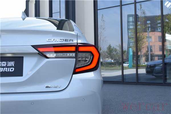 尾灯部分全新凌派进行了熏黑处理,在档次感和运动感方面都有着较大的提升,“C”字形的设计在夜间点亮后十分具有辨识度。而作为一款混动车型,凌派锐·混动则显得有些低调,尾灯下方的“E:HEV”标识则是辨别轻混版本唯一的特征。
