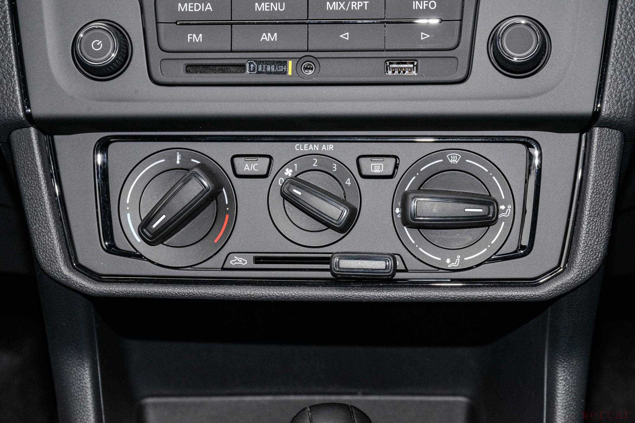 进入到前排,中控台的整体造型有些简朴,收音机区域的按键布局整齐,日常出行可以收听广播,或者插U盘听音乐。