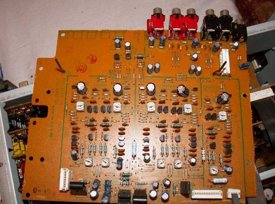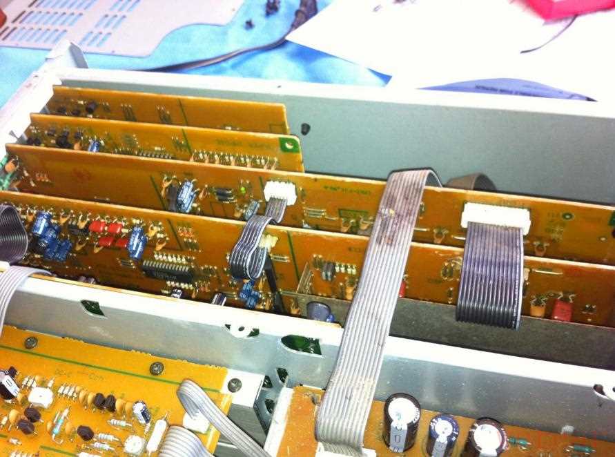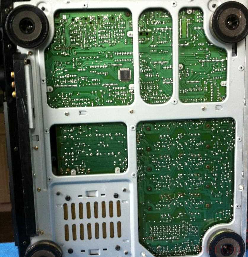 中间的几块电路板是信号切换以及DSP数字信号处理和解码,这些电路不是这次修理的重点,就不详细介绍: