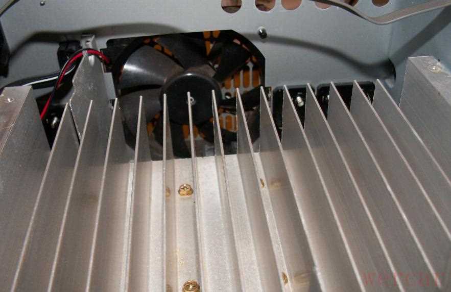 主散热器上有两个温度传感器,用于控制风扇的速度,只有大功率发热严重的情况时风扇才会起动,并且风扇的速度也是可调的自动控制的:
