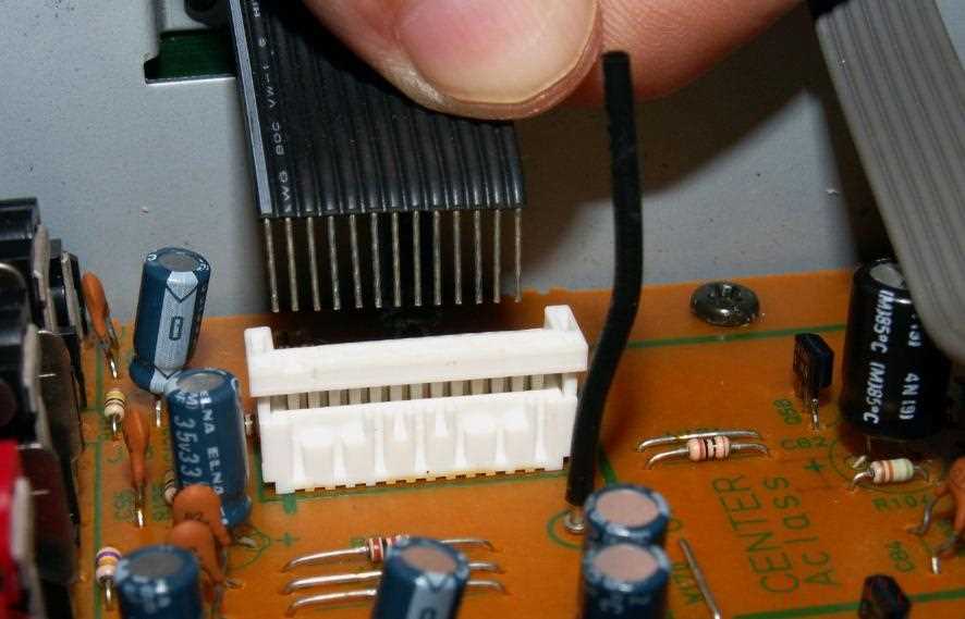要拆驱动板,首先要到机壳后面把驱动连接端子拆掉,这5个黑家伙就是驱动板的信号输入短路器,它负责把信号输出和输入连接起来,从而给驱动板提供信号。