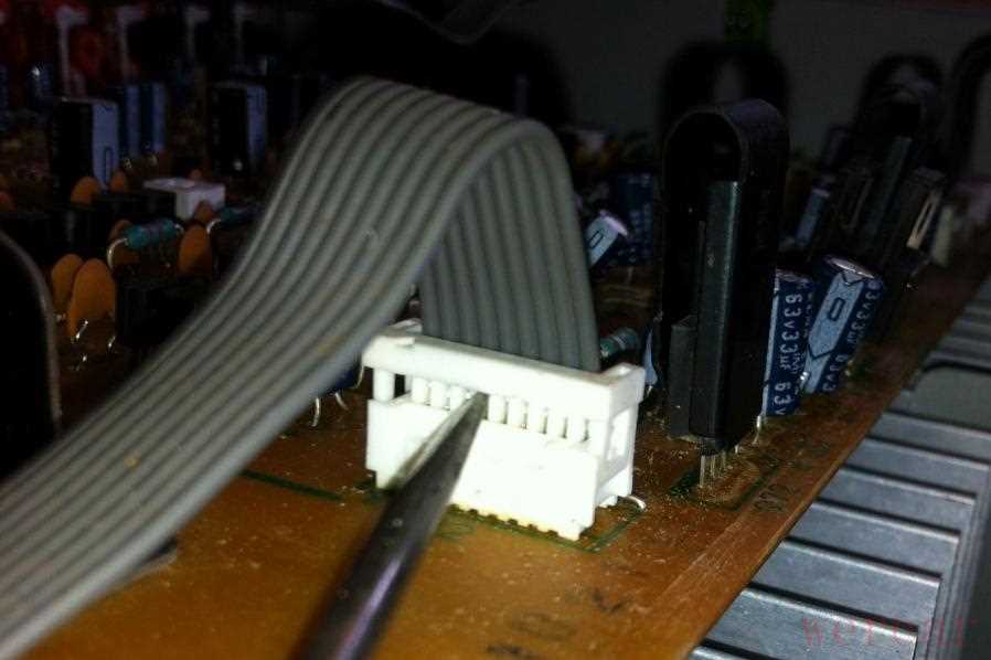 然后把驱动板上的排线都拆掉,建伍用的是这种多线直插的排线,用螺丝刀轻轻把固定卡向上拨开,排线就能直接取下来了: