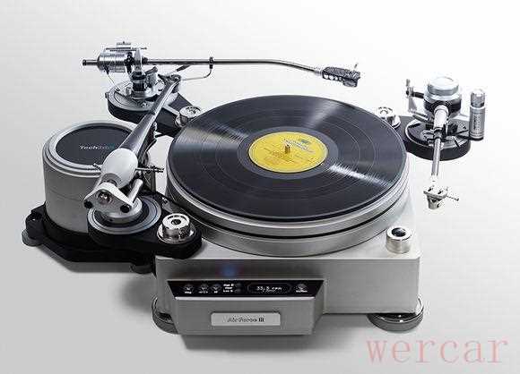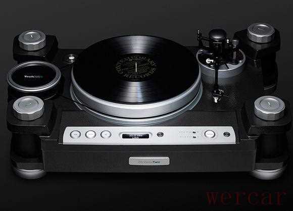 转盘分为上、下两层主副碟盘结构,重达19公斤的主转盘,由特别加工过的SU304无磁钢材车制而成。上层副转盘则有三种材质可以选择,分别是A7075超硬铝合金、SUS316L不锈钢、以及黑色压克力材质,三种材质的不同声音特性提供给用家选择。采用低推动电压的超稳定超低噪的AC同步马达,并由DC监控线路每圈1 5次测量并作出调节以确保精确转速,并可以进行非常精密的转速微调。TechDAS采用号称史上最安静的马达推动式气泵,再加上特制橡胶悬浮系统,使背景静深如海。马达,气泵,气压控制器,压缩气过滤器等4组独立供电,确保最高稳定性。全电脑精密监控调节系统,使操作变得轻松。