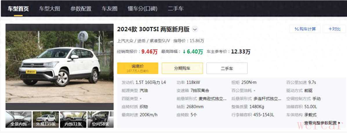 途岳钜惠6.4万,1.5T动力160马力,2680mm轴距标配,购车值不值一看