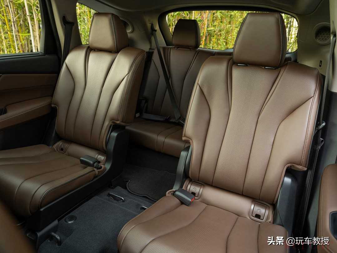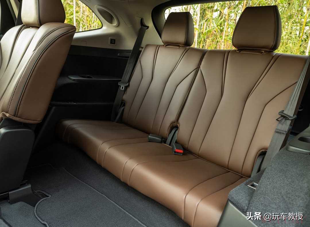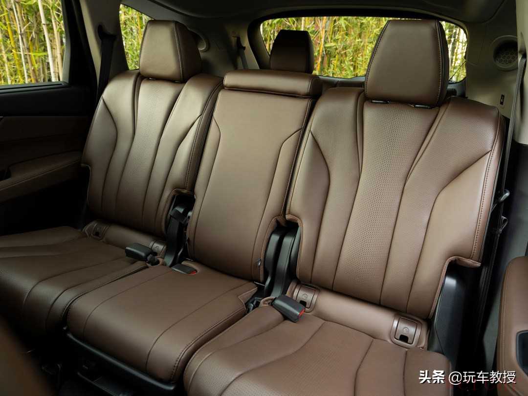 第三排乘坐体验相比起老款车型是有提升的,新款车型上第三排座椅的坐姿会更加符合人体工学,并且坐垫离地台的距离更大,同时还有更加优秀的头部和腿部空间。但对于成年人来说,第三排空间还是有点紧张,只适合成年人应急使用或者让小朋友乘坐。此外,在顶配Advance车型中,第三排侧面还会有USB充电口提供。