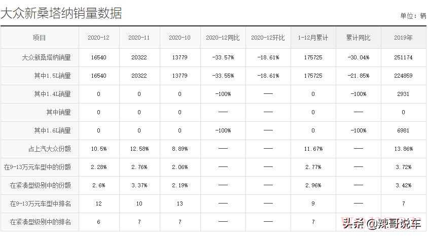这也是大众桑塔纳销量下滑的原因之一,在国产轿车逐渐开始发力的2020年,虽然它很便宜,但是性价比并不出色,即便有经久不衰的口碑作为支撑,但是所谓的变化,就是经典的逐渐暗淡,一年7万余台的销量下滑,已经是很多A级轿车1年甚至多年的销量之和。