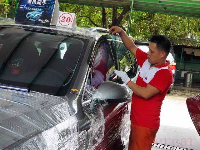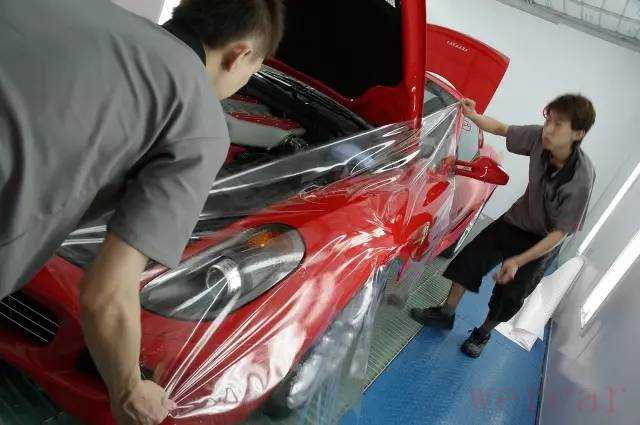 贴膜之前要先把车身包起来做好保护,确实将心比心,任何车主都不希望自己爱车在贴膜时遭到一点损伤。