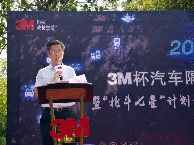 在深圳“爱车族”举办的3M杯汽车膜贴膜大赛当天,开幕式上3M中国南区安全与标示事业部总经理黄小涛先生公布了北斗七星认证体系,并且也为赛事开场,为众多来自3M授权门店的参赛者加油打气。