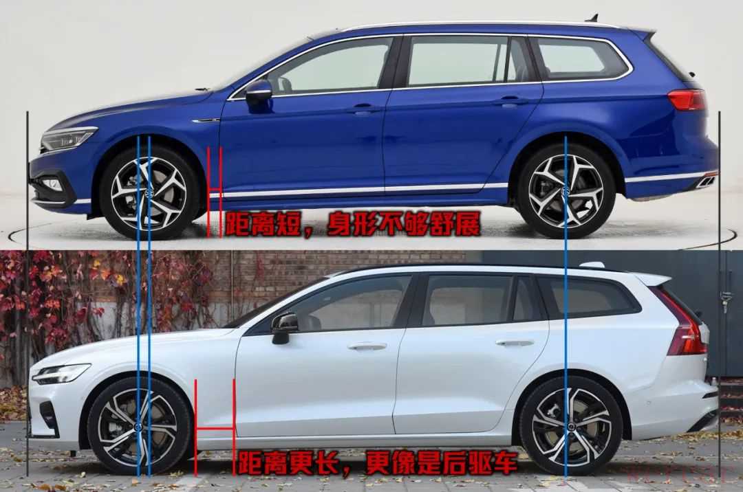 从这张图中,就可以看到V60虽然也采用横置前驱布局,但相比大众蔚揽等车型在侧面比例上的“优势”。更长的前轮到防火墙距离,让整个侧面线条更加舒展,更有纵置后驱车型的味道。