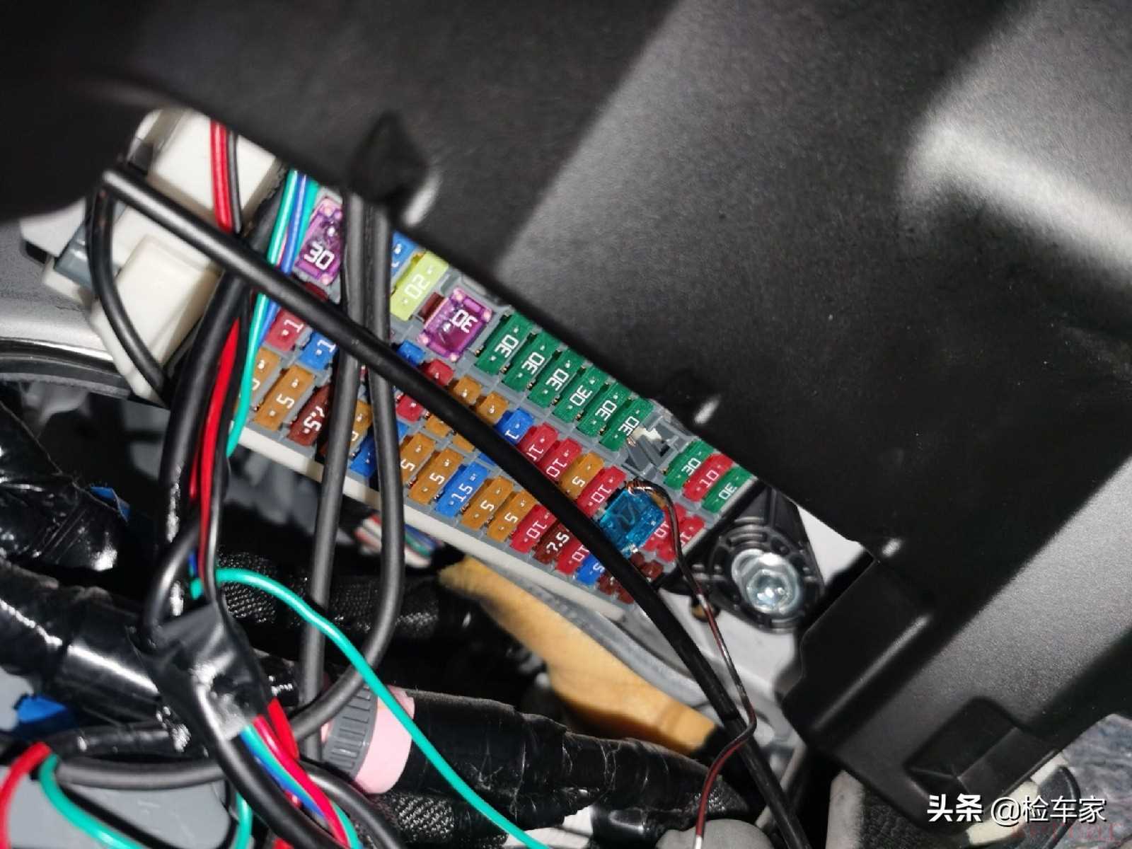 在检查内饰的线束的时候发现,前面工作台的保险丝盒加装了线路。走线十分凌乱,其实这样的接线当时还是有一定隐患的。简单地检查了一下好在并没有发现有续接和脱落的问题。