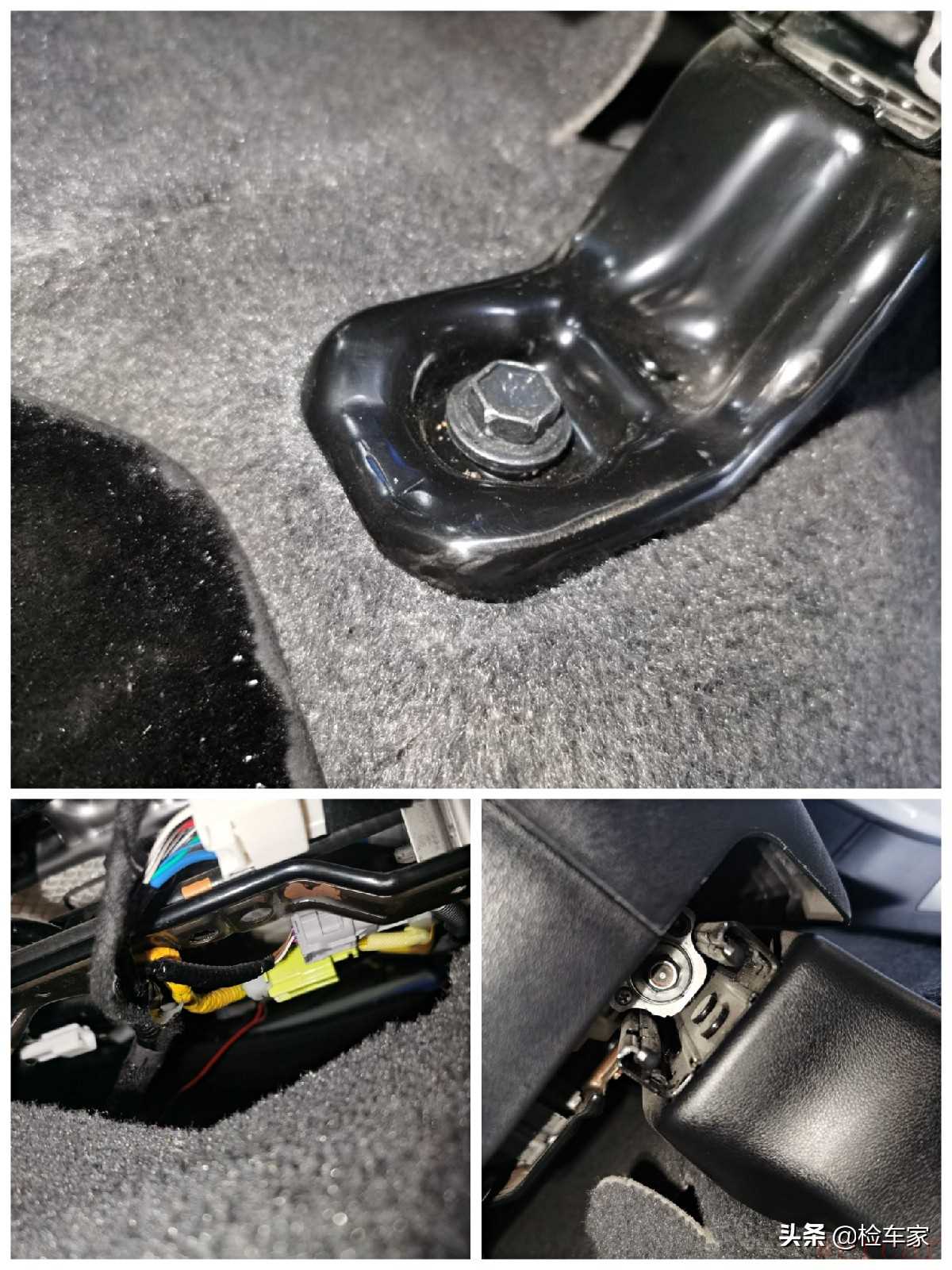 前排座椅螺丝虽然有拆卸的特征,但是底部滑轨和座椅骨架没有生锈和泥沙残留,干干爽爽。