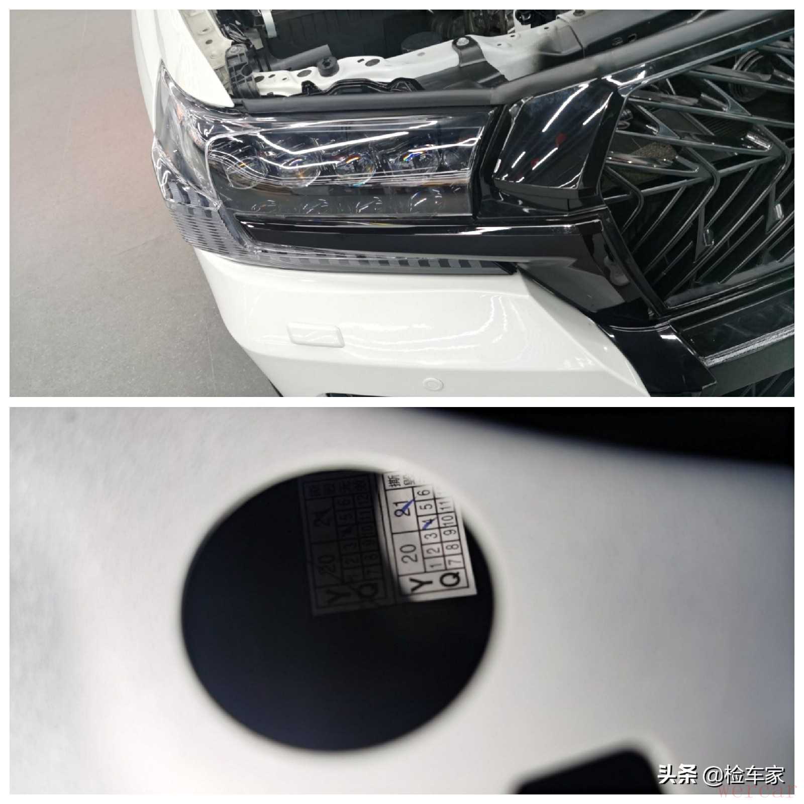 前面两个大灯固定螺丝都有拆卸痕迹,再往里面检测,大灯地贴的这个撕毁无效的标签,这也就能说明前面两个大灯后换的。毕竟平行进口的车上面出现中国字还是有点不大可能的。至于更换的原因很大可能是为匹配后盖的包围。行为之前在检测外面的时候并没有发剐蹭碰撞的痕迹。