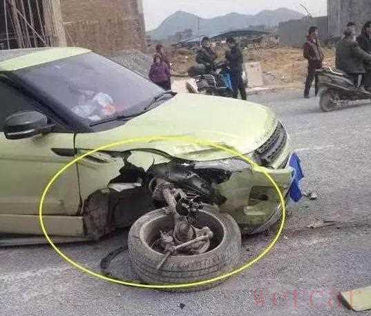 一辆路虎撞上了五菱,前者的损伤很严重,车轴都撞断了,而五菱只是损伤了右前门,车轴都没断……