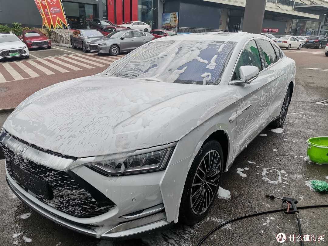 前脸真的不错唐DM虽好,但是台SUV,七座的空间跟理想ONE比起来有点鸡肋。然后上面两台车开着坐起来的感觉仍然像是端着方向盘在开,典型的SUV车型坐姿。而本人更喜欢轿车的坐姿,躺着开车的感觉。当时在比亚迪4S店只看到了汉EV的展车,并没有看到汉DM。结果过了一阵子后,朋友买的汉DM到了,上手开了一把,一个感觉,真香。随后直接去了4S店,盲订了次顶配的汉DM。销售告知只需要等一周,结果硬生生等了一个月,车虽然是好车,但是比亚迪的服务水平确实有待提高,车子到店后都是我自己上手用自带的雪崩洗车液洗的车。