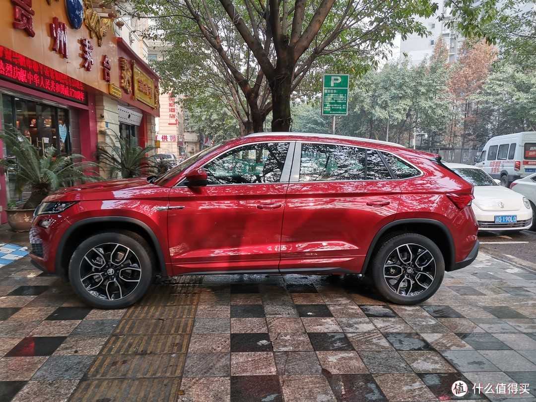 于是继续持币观望,这个时候在某乎上无意刷到了斯柯达的柯迪亚克GT,文章主要提到了0-100加速6.5秒。一看这个车加速能力竟然这么快,但是网上这款车的介绍真的太少了,只有几个没有什么流量的车评人介绍,然后我跑就去4s店看车去了。见到实车,确实感觉很不一样,有棱有角的车灯,性感的臀线,不那么溜背的溜背,说实话,外观整体比途观L好看太多。只是因为品牌是斯柯达,不是大众标,无论从市场定价高度和火热程度,真的是一个天上一个地下,也可以看得出国内大部分用车群体对于品牌的偏执。家里第一台车是12年的斯柯达明锐,1.6L自然吸气的发动机虽然动力平平,不过是真的耐操,油底壳顶凹了还坚持开了5年多,所以对于斯柯达这个品牌的车还是有比较高的信任度的。于是回来后仔细查了一下车辆的配置后,发现这车性价比是真的高:同为EA8888发动机+DQ500变速箱+四驱的动力总成,比途观L便宜了2-3w左右,而且当时查到的这台车的中保研碰撞成绩比途观L还好。在等了漫长的半年之后,19年12月初以23w价格最后入手了次顶配。本来想提车后写文章的,一直拖延,懒了整整一年,都没写它。