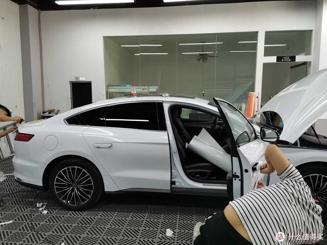 安装100W吸顶灯安装充电桩的同时,也给将车子送去贴膜,原厂车漆白色偏冷色,而且车漆里面反光颗粒较少。因此选了一款白色的改色膜,保护原车漆的同时,还更加闪亮。手机拍出来有点偏黄,改色膜颜色和原车漆色温基本接近。