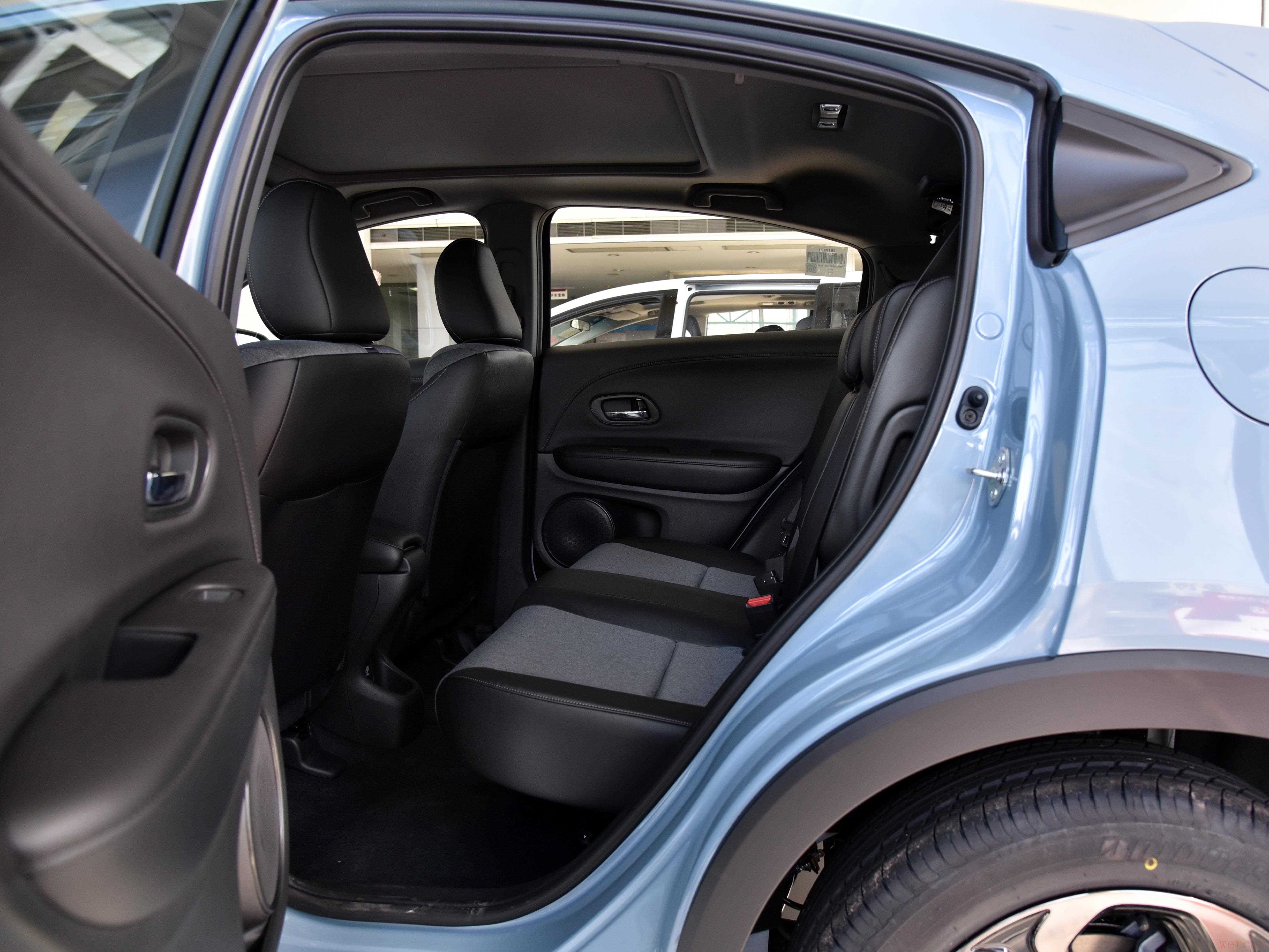 车身尺寸上,XR-V在小型SUV里还算是比较大的,长宽高4328/1772/1610mm,轴距2610毫米,相当于一台紧凑两厢车的长度。另外实拍的高配车型配备了215/55 R17的轮胎以及黑化轮圈,去年一整年本田怎么那么喜欢玩黑化呢。