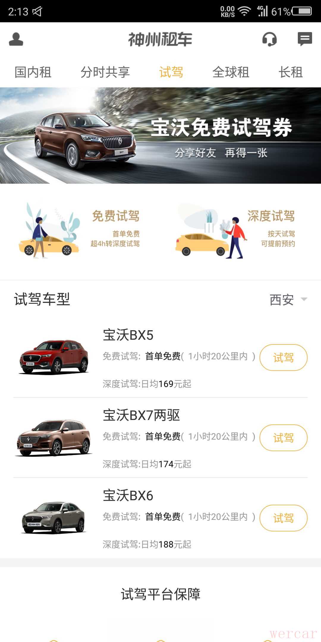 用户可还可以提前预约进行深度试驾,租车费用按天计算,BX5日均99元起,BX6日均128元起,BX7日均126元起。试驾后顺利购车,平台可返还车主多达3天的租金!