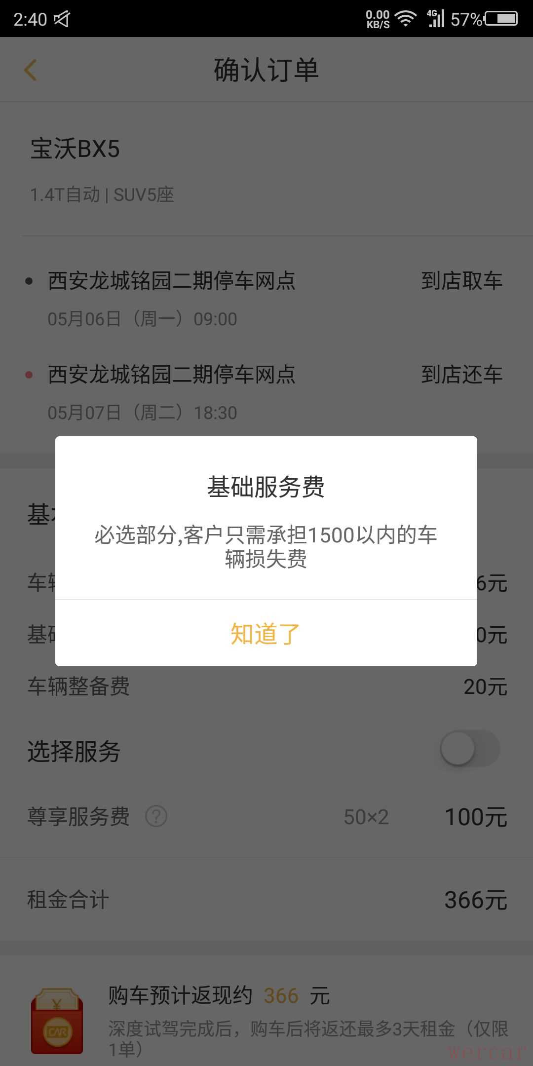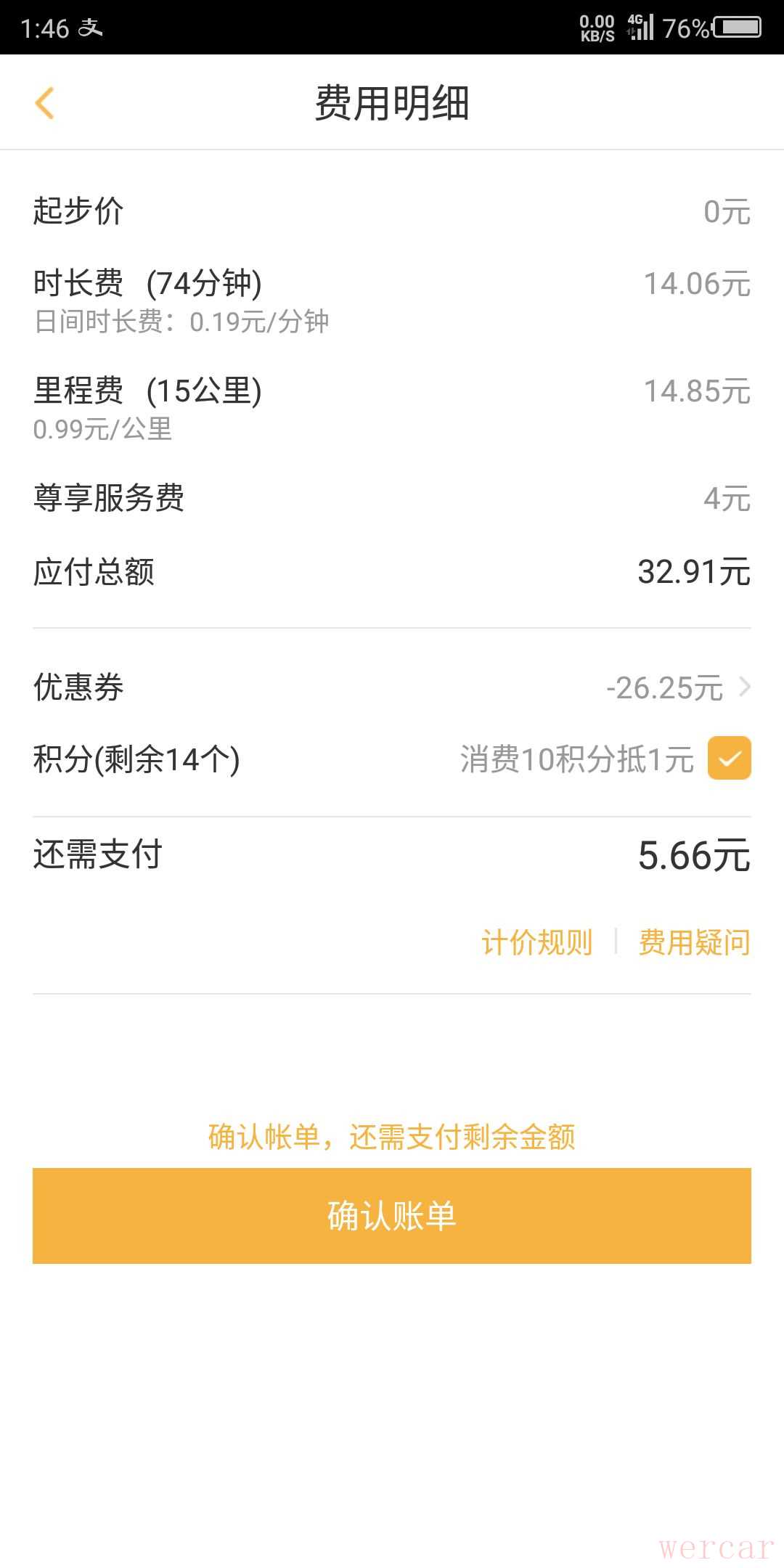 深度体验了74分钟+15公里(对,没错,我就是卡着点,请叫我葛朗台),宝沃BX5的整体性能也了解的是差不多了,我们回到神州租车APP,看看用了多少钱吧!5.66元!这意味着什么?不说了小编要去拼命分享活动链接了……