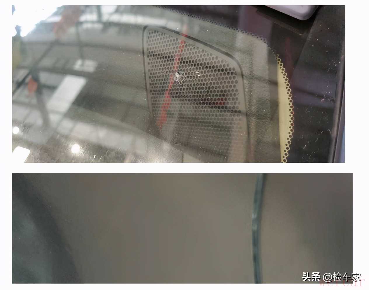 令人诧异的是全车玻璃居然都还是出厂的原车玻璃,但是前挡风玻璃局部有破损,至于是去修复还是更换就看客户怎么选了,一般来说破损点不大的话,修复还是没问题的,花费也不多。