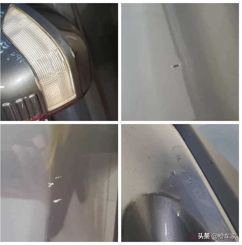 开始检测,按老规矩还是先绕车一周检查漆面划痕和各种漆面瑕疵,整体漆面从肉眼观察来看一圈漆没跑了,具体的漆面情况我们用漆膜仪再看看下结论,也是因为一圈漆所以漆面划痕很少,但还是免不了一些瑕疵和爆漆的情况。