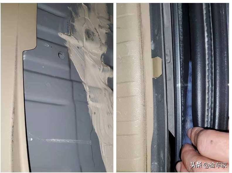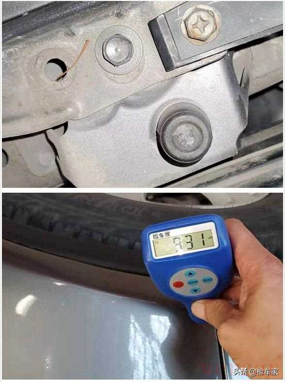 检测后面行李箱盖漆面数值过高,打开后盖检查合页螺丝没有拆卸,但是下部车门边缘胶线已经爆开生锈,车门有过修复的痕迹。