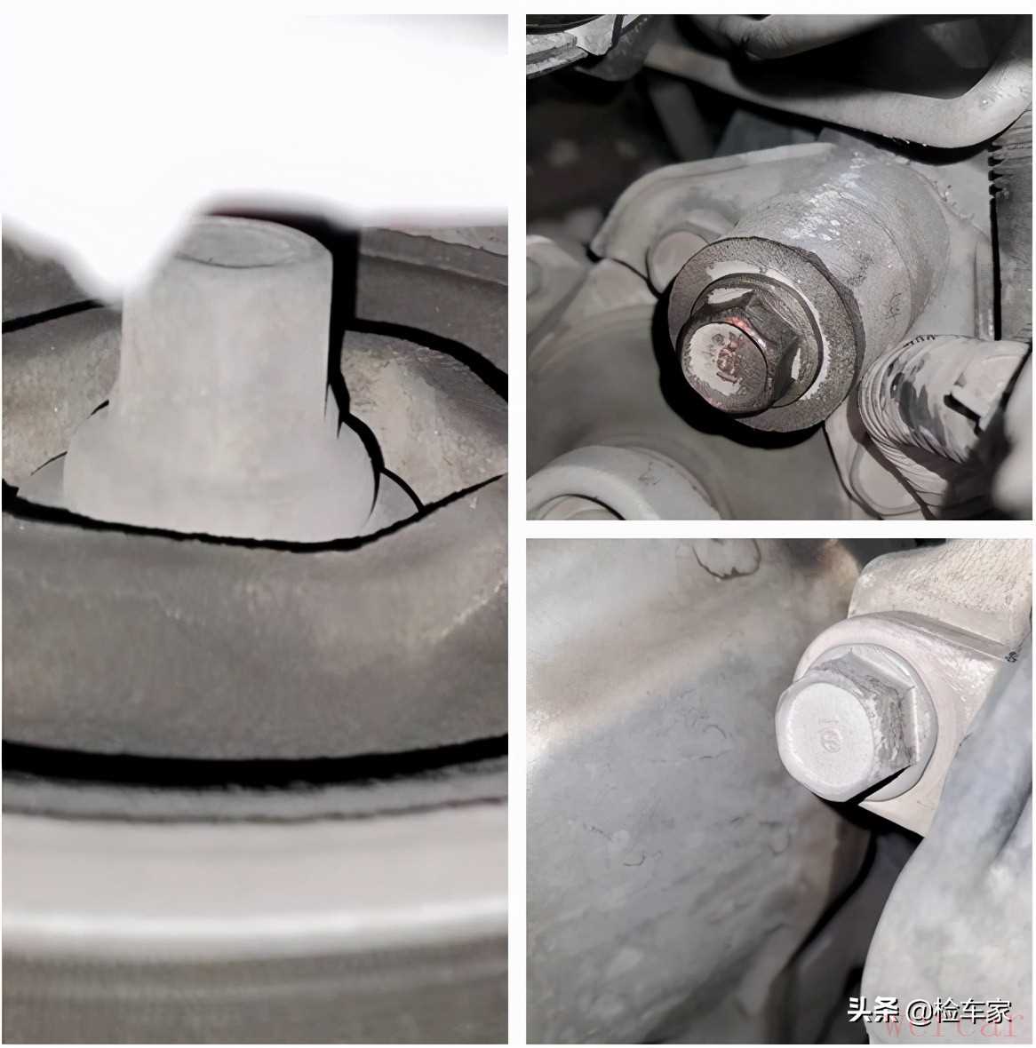 可以看到发动机机脚螺丝有拆卸,但是进气排气歧管的螺丝都没有拆卸的痕迹,曲轴大螺丝也没有拆卸,排除发动机吊装分解维修的可能,这个年限的车换机脚垫也正常。不过气门室盖和正时盖都有漏油的迹象。