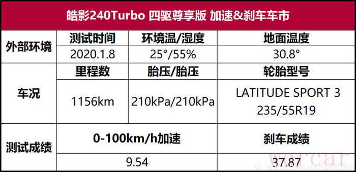 (本田皓影 240TURBO 四驱尊享版 0—100km/h加速成绩 9.54秒)