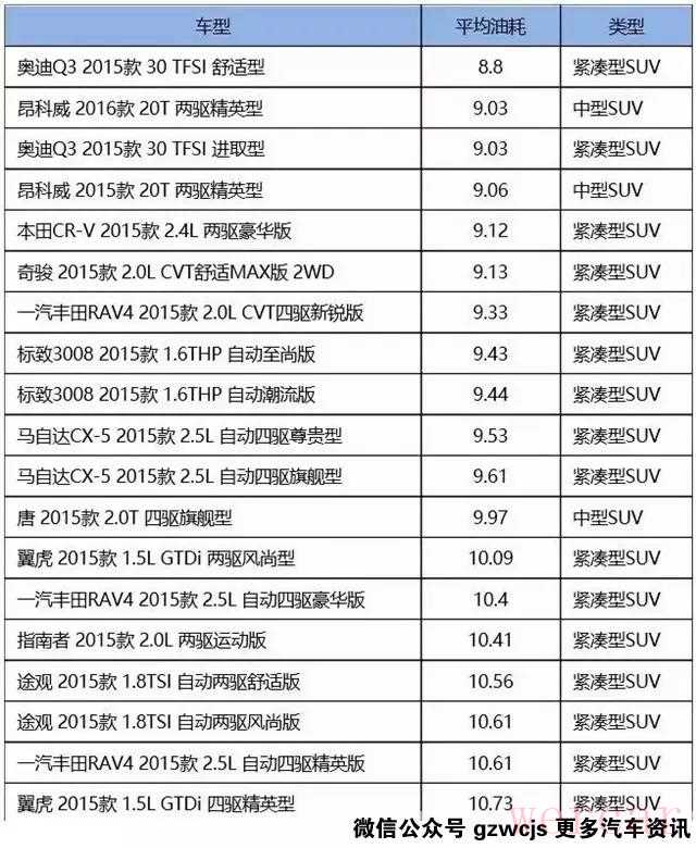秉着对大家负责的态度,教授分析所采用的数据要求是真实车主使用的油耗表现。所以这次采用的是小熊油耗的统计数据,为何选用小熊油耗,主要是因为这是超过60万车友根据加油量和行驶里程实际统计计算的真实油耗。相比其他油耗统计和测试方法,可以这样说,因为是基于真实车主的用车信息,小熊油耗反应的平均油耗是最贴近用户实际用车环境,最准确反映车型综合油耗情况的。下表是小熊油耗公众号最近发布的 2015年 20-30万区间SUV油耗排行榜。