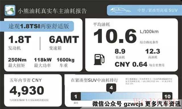 途观上榜的1.8 TSI车型搭载的是大家最熟悉不过的EA888,涡轮增压加缸内直喷。但由于这一代的EA888用的是铁材质,自重本来就比铝制的发动机要重,油耗上的表现自然也不会太乐观了。