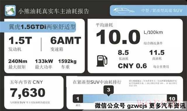 翼虎上榜的车型是1.5L GTDi车型,搭载的发动机配备涡轮增压和直喷技术,而翼虎1.5L车型的上榜这也证明了小排量涡轮增压发动机是未来发展的趋势。虽然这款发动机兼具了动力输出与小排量,但是其在油耗上的实际表现上却没能同步跟上。