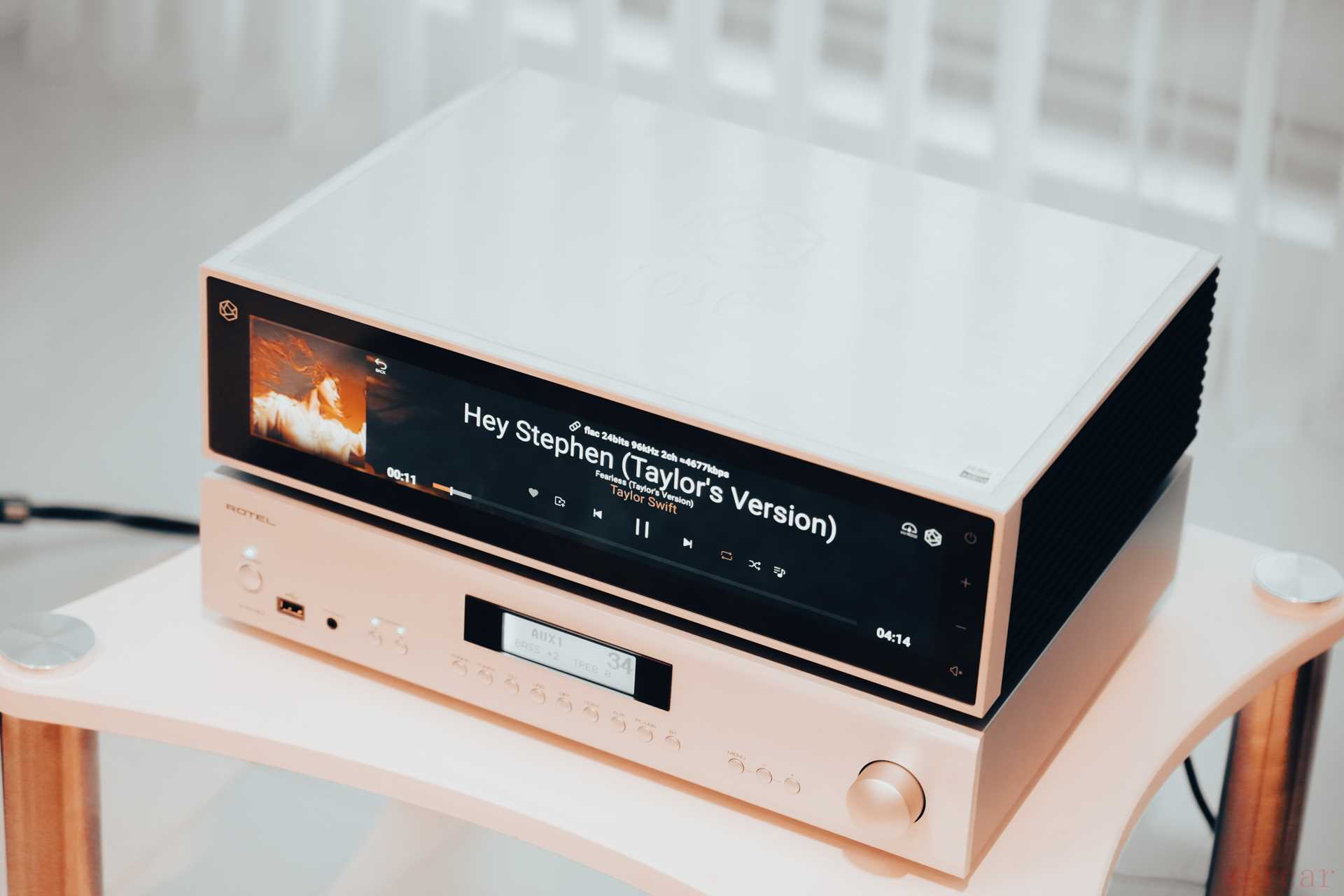 而音源部分,我搭配了来自韩国的Hifirose RS150B。这是一台“颜值”与“实力”严重并存的流媒体播放器。它那块巨大的高分辨率触摸屏,操作起来如丝般顺滑,看专辑封面本身就是一种享受。内部采用了顶级的解码芯片(如ESS Sabre),声音素质极高,功能强大,它不仅支持Roon Ready、Tidal、Qobuz等主流流媒体,还具备视频播放能力,其直观的界面让选曲和设置变得极为享受。