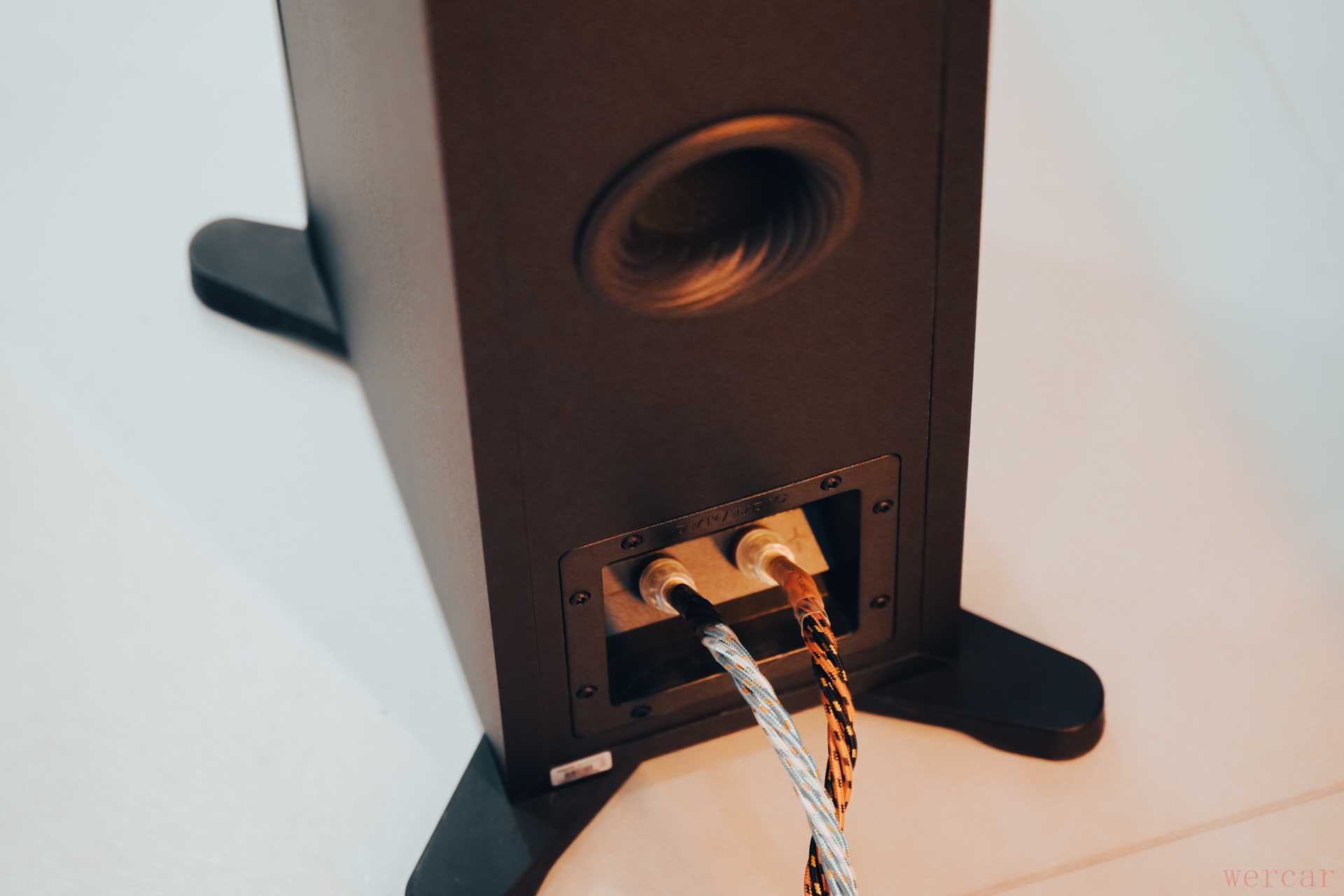 背部的接线柱用料扎实,虽然只支持单线分音,但对于这个级别的音箱来说完全足够。