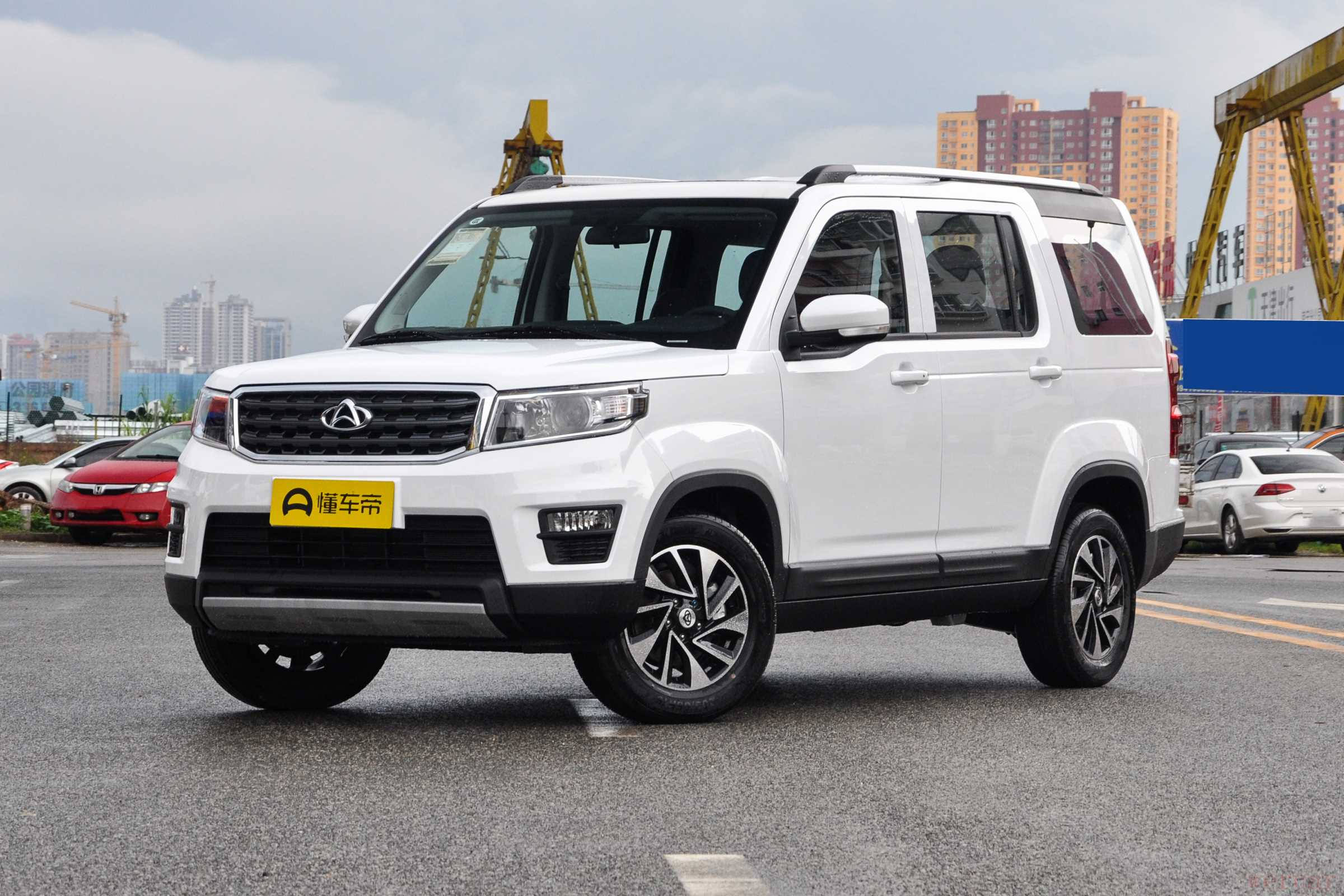 首先外观上,这款车很有路虎的影子在内,虽然指导价格仅有7.49万,但是丝毫不影响它大气的外观。前脸方方正正的大灯给人一种憨厚的感觉,配合干练的线条,安全感极佳;但是大灯是卤素光源,照明效果不太理想。进气格栅面积不大,周围包裹一圈镀铬饰条,与大灯连接,突出前脸的层次性。下方的黑色包围也是给人很好的层次感。