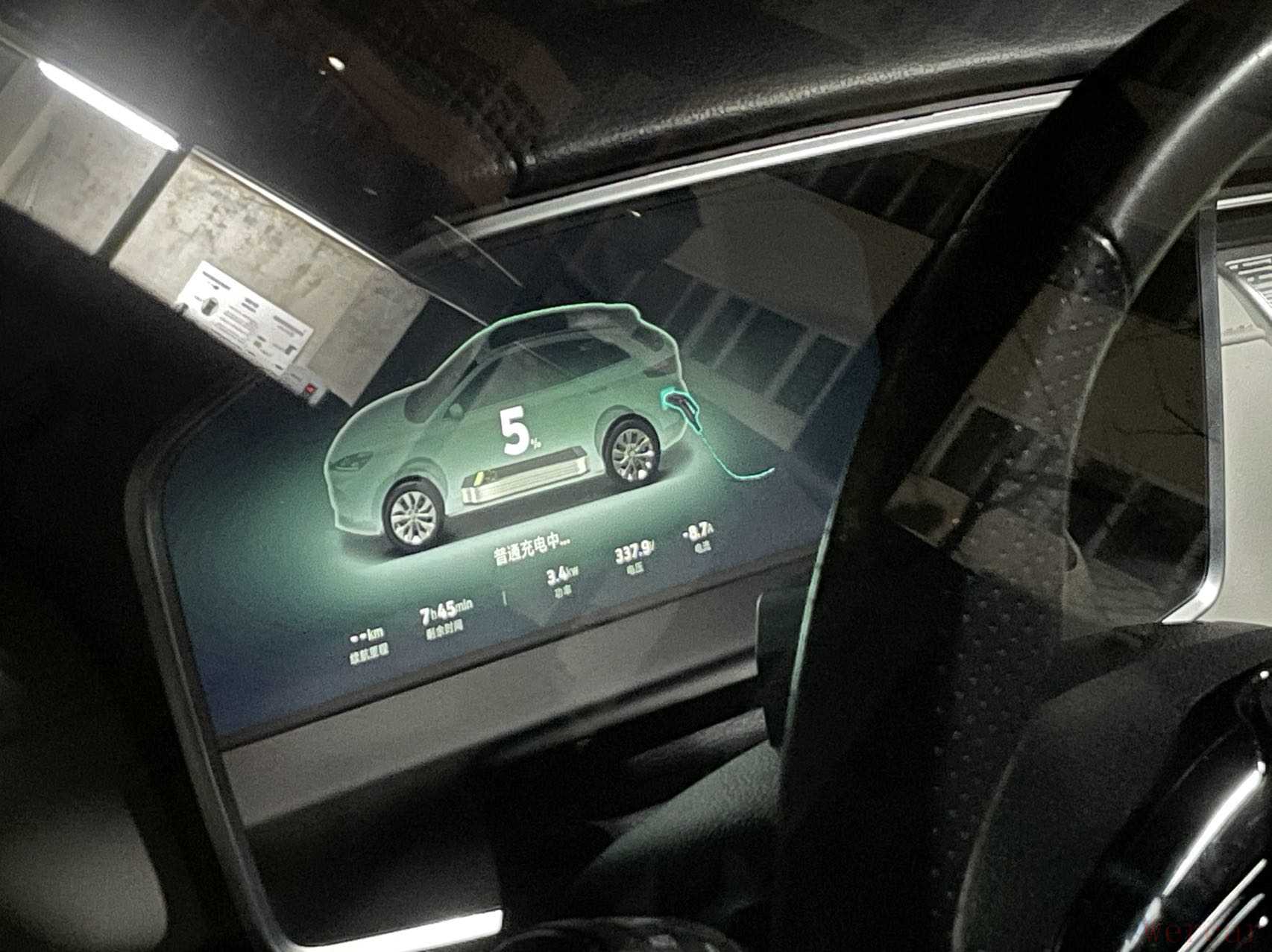 第二次充电测试时,车辆动力电池电量为5%,但车内电池电压显示仅为337.9V,与官方数据相比,电池的电压不足。