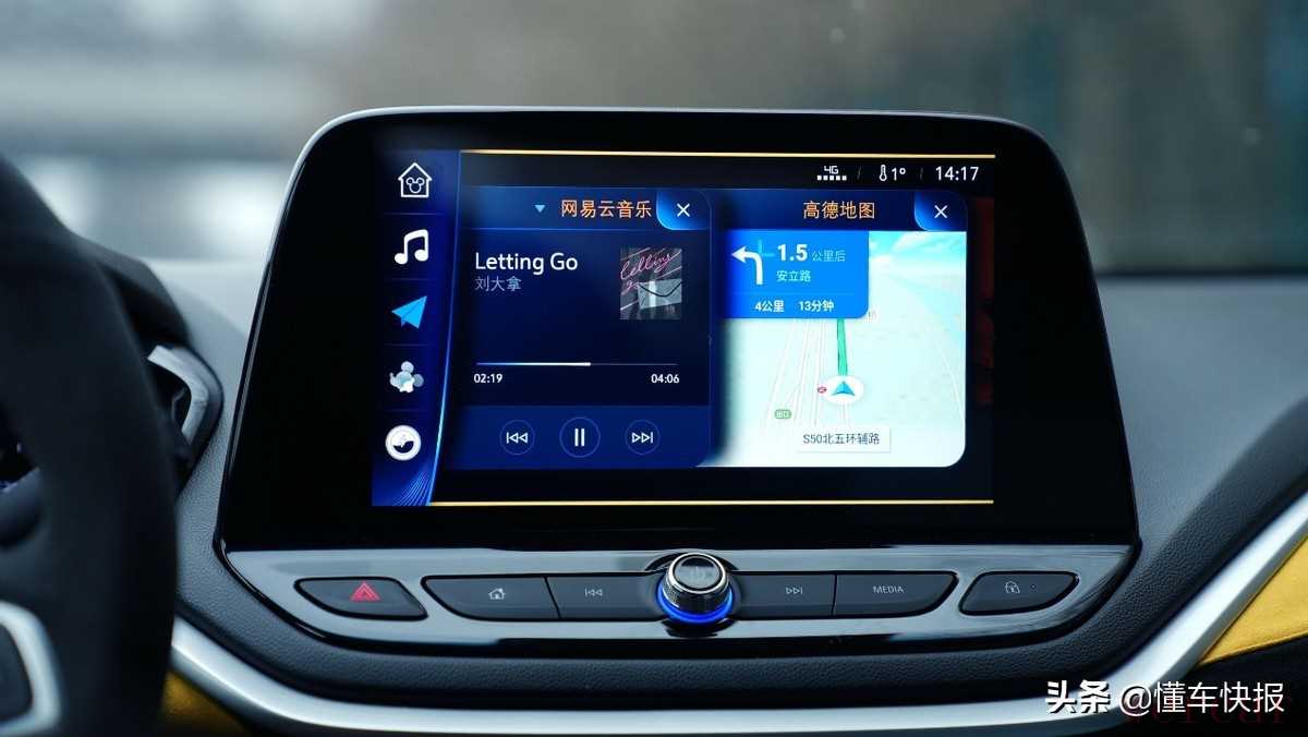 车机的中控屏幕可支持分屏显示,能同时显示导航和听歌信息。此外,用户在使用车载App(含高德地图、网易云音乐等)时还可享受每年100G的免费流量,从日常使用需求来衡量基本可谓是取之不尽了。