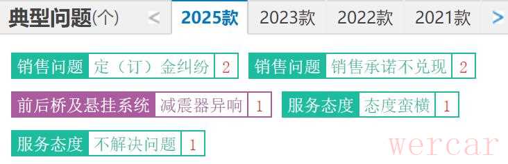 在市场反馈中,别克GL8的相关投诉主要有定/订金纠纷、服务态度蛮横、服务态度不解决问题、减震器异响、销售承诺不兑现等。
