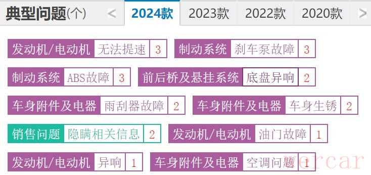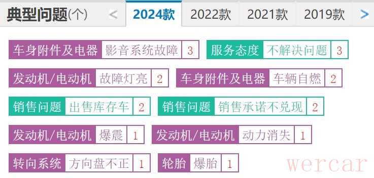 在市场投诉中,此次的主要故障毛病涉及到,影音系统故障、发动机熄火、悬挂故障。全新2024款的车型,在投诉问题上目前还并没有。