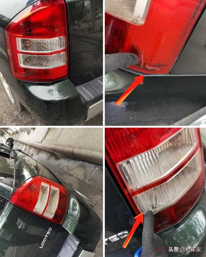 检测到右后尾灯有明显的破损可能是倒车的时候被什么东西顶了一下,车主自己也没有去更换。对车辆一圈外观检测下来,总结车辆外观情况,整车前后保险杠和前风挡玻璃有过更换,全车都有二次喷漆,部分金属部位有钣金喷漆修复,左D柱结构位置有钣金。