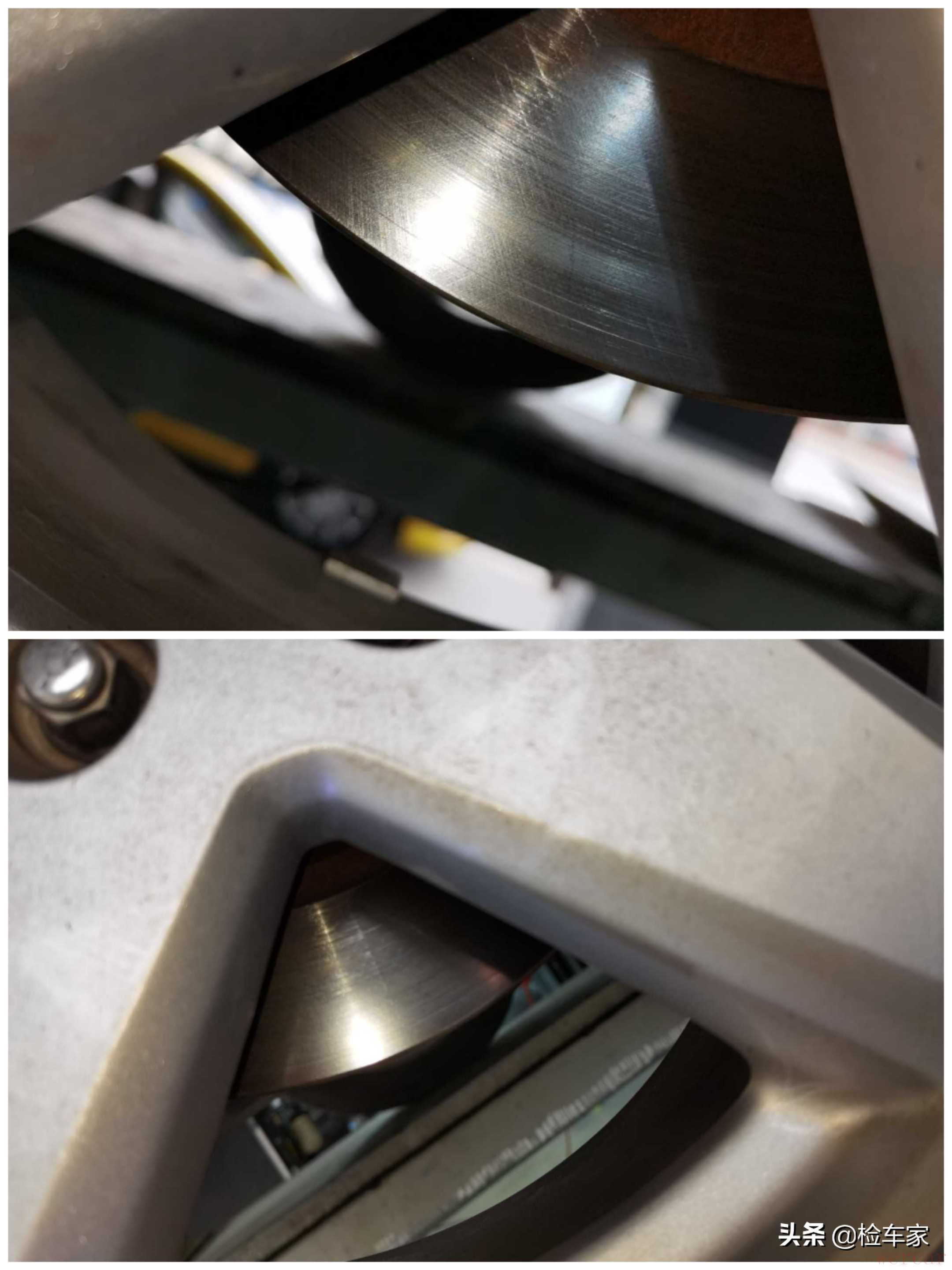 前面的刹车盘都是已经更换了,这样也从侧面证实了这辆车的公里数比较大了,要知道正常的一辆家用车的刹车盘大多数都可以行驶十二三万公里,这个有疑虑的朋友可以自行百度一下。