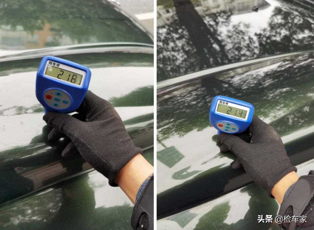再来看看引擎盖有没有问题呢?引擎盖的边边角角及上面的线条经过检测都没有发现的钣金修复,漆面树枝都在220左右,说明只是有喷漆修复。
