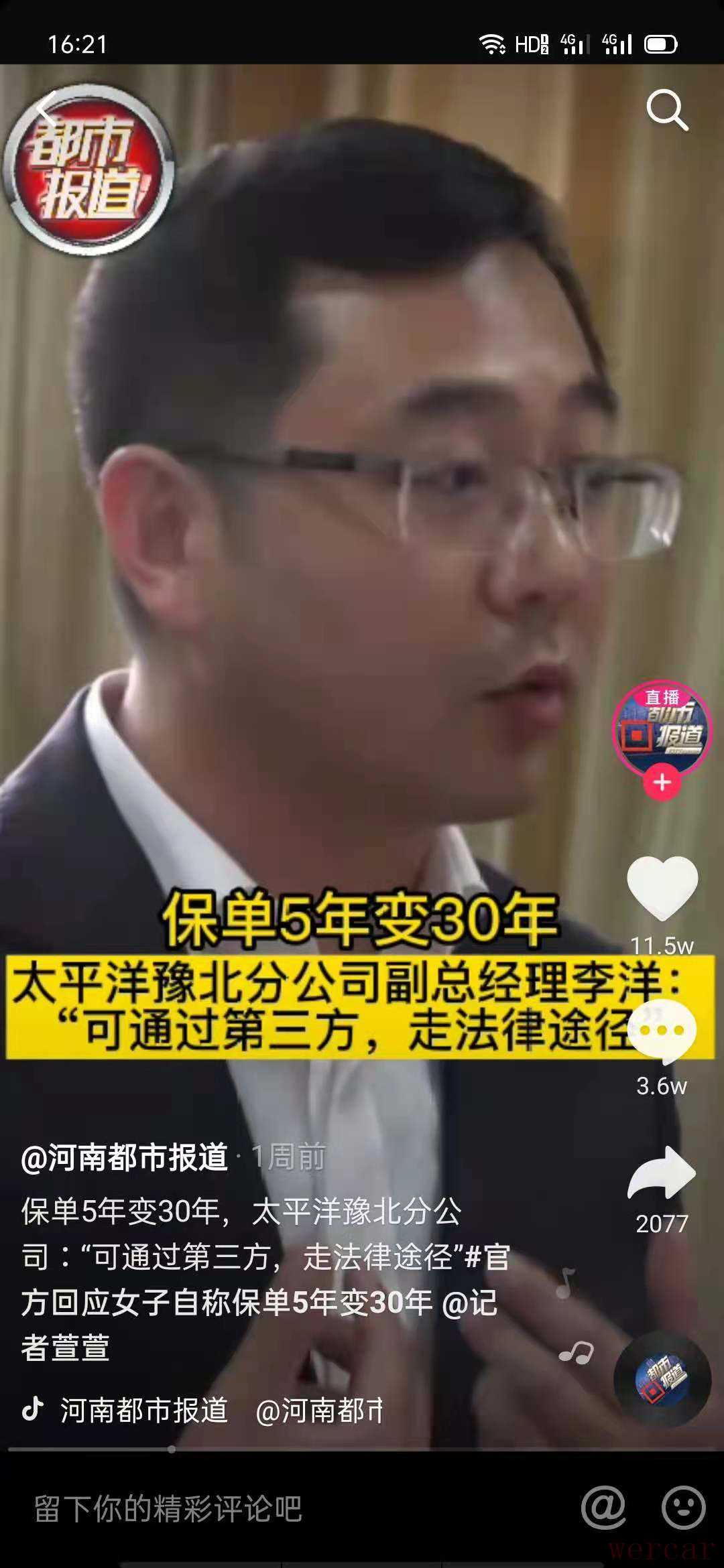 当然以上都是我个人的猜测,因为我觉得这个事件从媒体报道视频的内容上漏洞太多,而之后都市频道的记者——萱萱,也就是此次报道太平洋事件的记者,在抖音上发表了一个视频,说是太平洋公司的相关人员要找该记者“对峙”,该记者做出了回应。