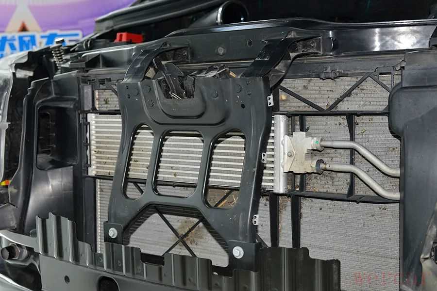 前防撞梁与水箱之间的距离超过了100毫米,预留了比较大的缓冲空间。