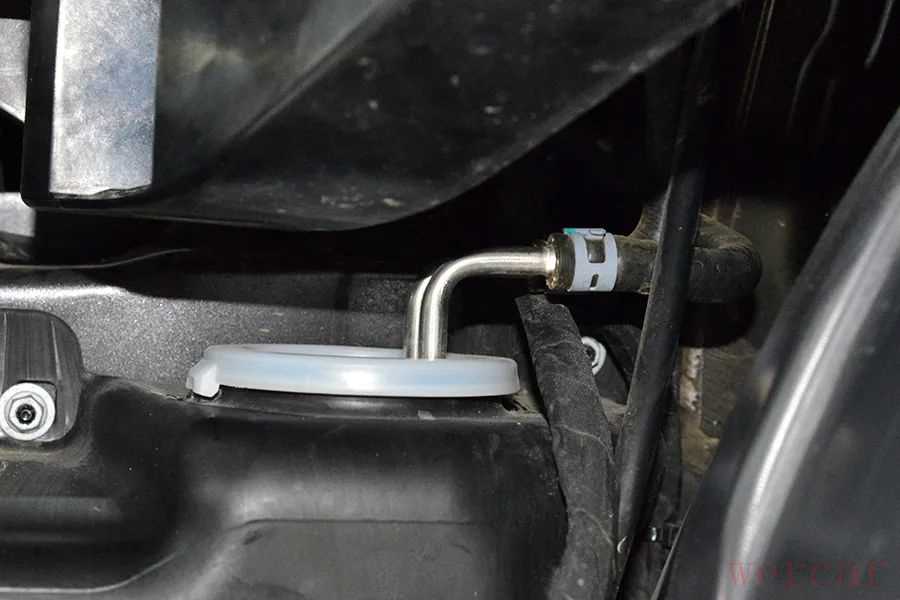 这辆车使用了一个非常结实的玻璃水壶,并且有一组管路深入到水壶之内,利用发动机温度对玻璃水进行加温,便于在冬季保持玻璃水温度,不容易结冰,喷出也不容易结霜。