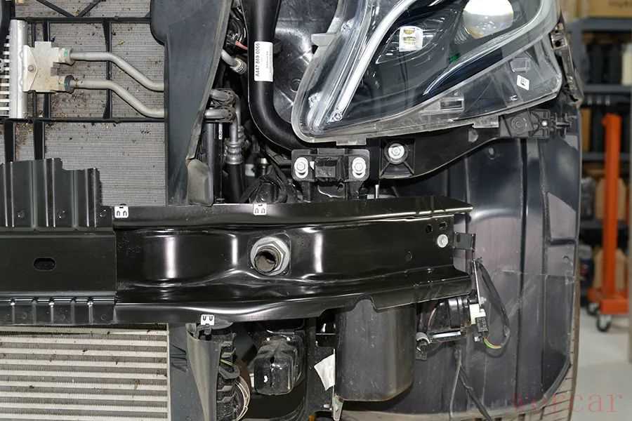 令人大跌眼镜的是这辆奔驰车,居然用了一根单层冲压钢板防撞梁,拆过这么多奔驰,几乎无一例外都是铝合金,现在怎么和大众一样了。这根防撞梁的厚度为1.74毫米,宽度能覆盖77.37%。防撞梁与杠皮之间没有行人保护泡沫,甚至没有任何缓冲材料,更不用说主动引擎盖了,这是非常老旧的设计。