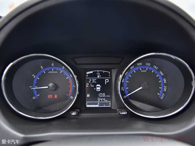 仪表盘采用了比较常见的双炮筒式造型,突出年轻感,而中间的显示屏除了显示常规的油耗等信息外,还能实时监控轮胎的胎压。