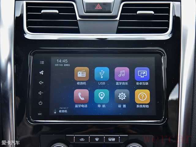 中控彩色显示屏支持多点触控,显示效果还不错,常规的影音、蓝牙、导航都有配备,功能很全面。