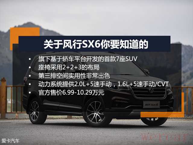 编辑点评:相比之前推出的风行S500,风行SX6在底盘隔音方面出色的表现是我没有预料到的,它的行驶品质确实不错;主打的7座大空间也并不是虚有其表,特别是第三排表现出了媲美MPV的乘坐表现;配置在同级中也不落下风,只是1.6L的排量确实有点差强人意,不过好在这款车还有一款2.0L的版本,而且售价也不超过10万,在三四线城市应该会有不错的市场空间。