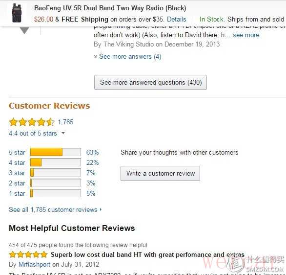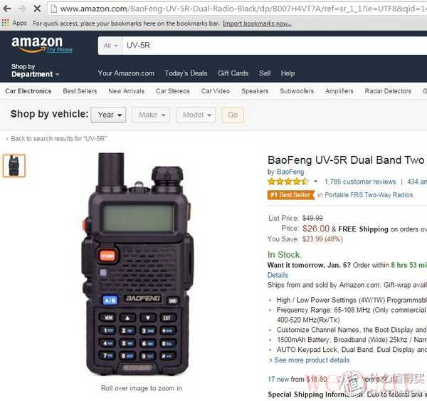 不过在中文网站里搜索这货的评测特别少,玩无限垫的那一般人基本都是几千块的三大厂产品如YAESU、KENWOOD或者ICOM啥的,这种低端货人家看都懒得看。不过还是在某个网站上看到有人回复说UV-5R在美亚上卖的不错。纳尼 瞅瞅去!