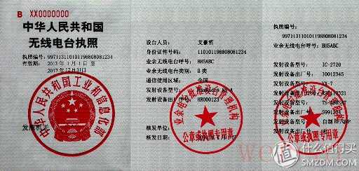 要合法使用对讲机,需要两个证:一个是业余无线电操作证书(相当于驾照,代表你有能力正确使用对讲机),一个是无线电台执照(相当于行驶证,代表这个对讲机是你经过合法手续注册过的)。不过,可以拿自己的操作证(驾照)去玩(开)别人的对讲机(车)哦。这两个证的样式可以参考下面的: